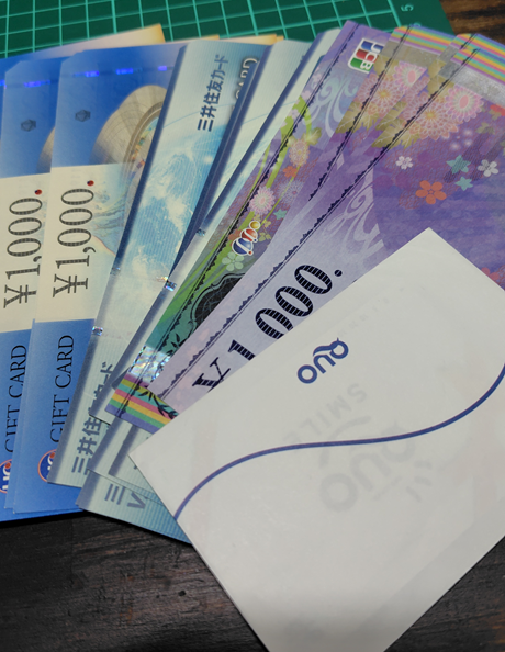 商品券、図書券、QUOカードが少々。商品券をさがしたところ、¥16,000円程ありました。